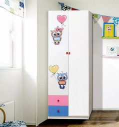Шкаф 2-х дверный с ящиками комбинированный и фотопечатью Совята 2.1