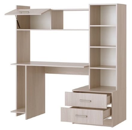 Письменно-компьютерный стол ПКС-7 с 2-мя ящиками на роликовых направляющих и нишей для системного блока. Для удобства открывания и удержания фасада в открытом положении устанавливается газлифт. Крышка стола обработана 1-мм кромкой, что делает работу за столом более комфортной и удобной. Рабочая зона стола 1118 х 456 х 570 мм.